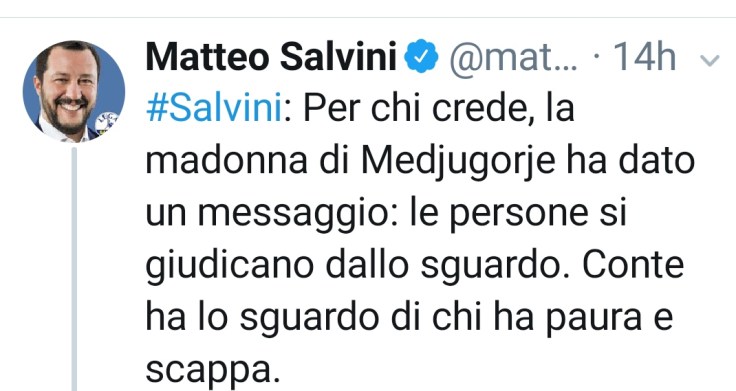 LAVETE CAPITO CHE HA SALVINI CI PARLA LA MADONNA ???SCUSATE SE E POCO…CARI BUONISTIBL ,SE SAREBBE RAZZISTA LA MADONNA NON CI APPARIVA IN VECE APPARE A SALVINI E AVVOLTE PURE AGLI ITALIANI CHE DORMONO IN MACCHINA SOLO CHE ALLORO DICE “50 BOCCA FIGA”🇮🇪 ⚽