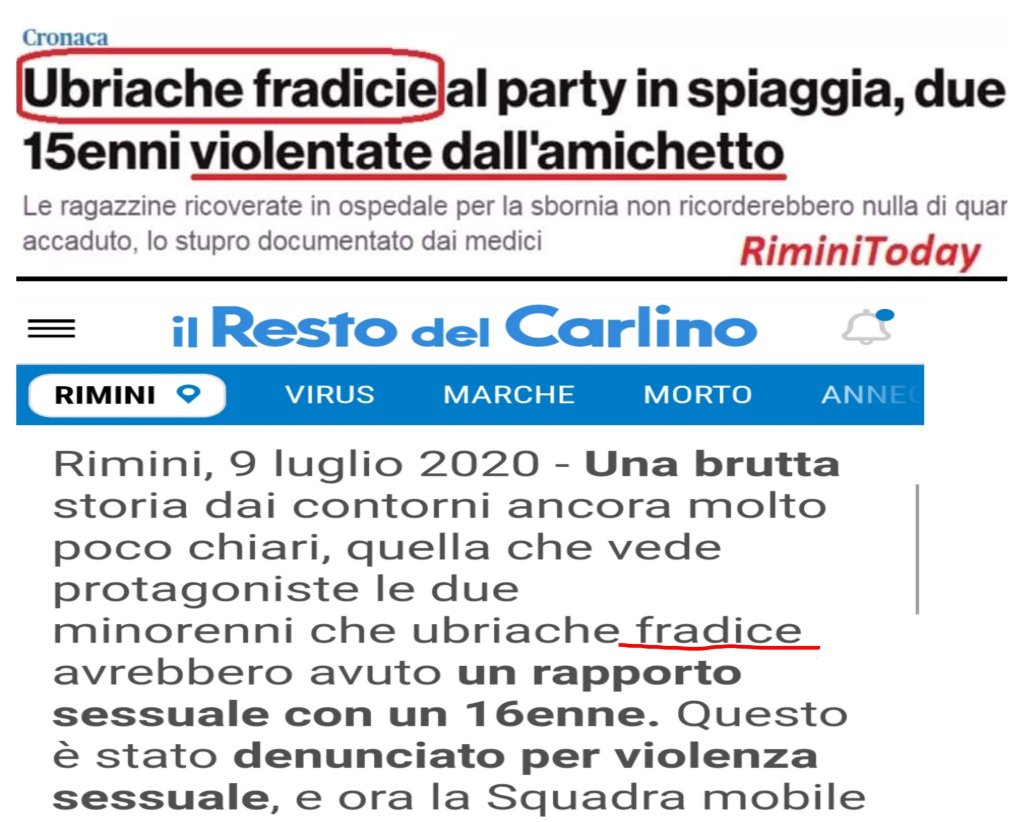 Per il Resto del Merdino poi “protagoniste”, dunque attrici attive (erano in coma etilico!!) sono le vittime.